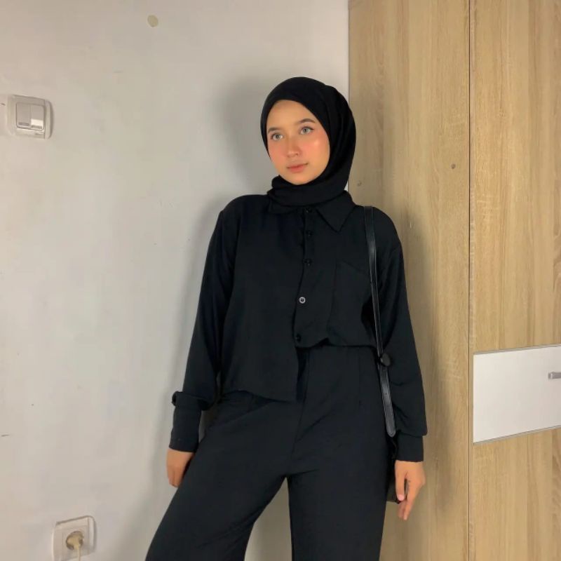 B&D- ONE SET CRINKLE/HAWA ONE SET CRINKLE/SET CRINKLE CELANA KULOT/ CROP TOP OVERSIZE WANITA / CELANA KULOT KARET/SETELAN CEWEK CROP/SETELAN WANITA CELANA KULOT/CRINKLE SET/KEMEJA CROP LENGAN PANJANG/CROP TOP/CELANA WANITA KARET/KEMEJA OVERSIZED