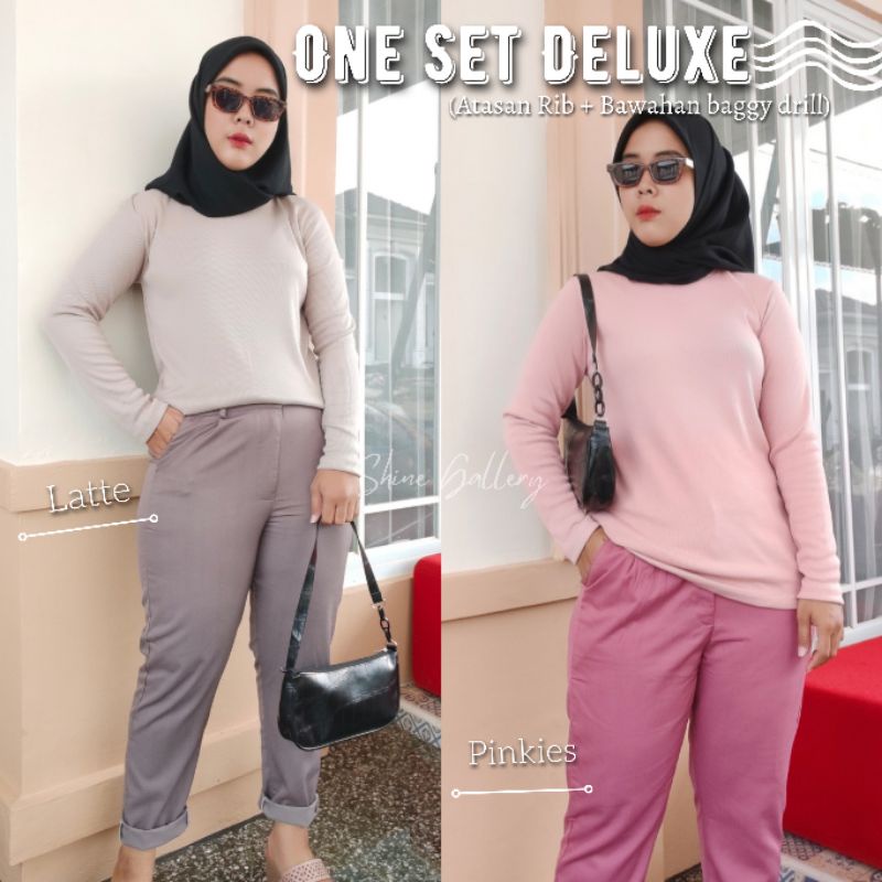 SETELAN KAOS RIB + CELANA BAGGY PANTS / KAOS CEWEK LENGAN PANJANG / KAOS WANITA / CELANA CHINO / ONE SET