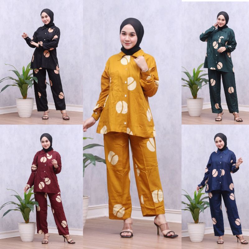 [BISA COD] Setelan Wanita Lengan Panjang One Set Bali Kopi Pecah Robusta Shibori Harga Grosir