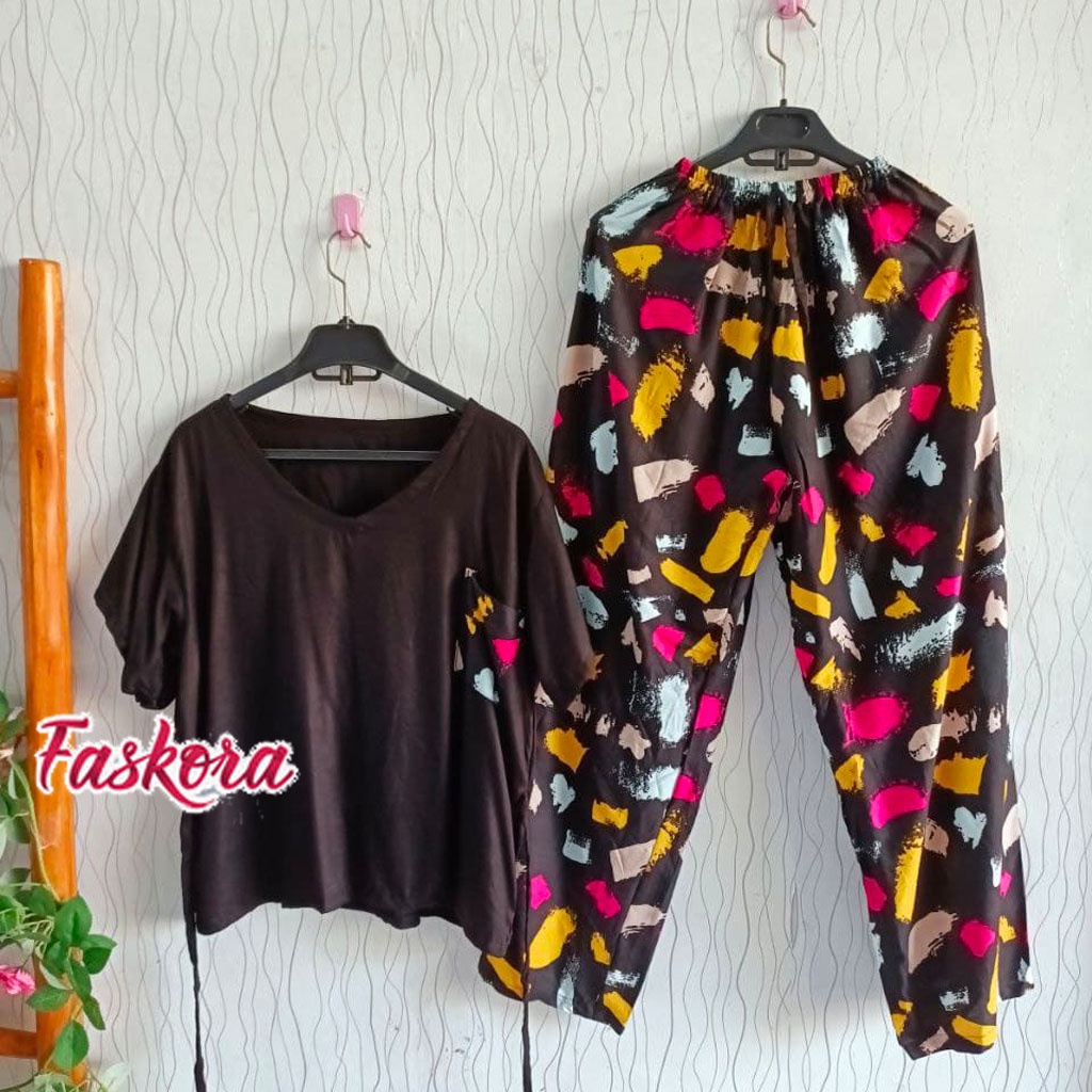 Setelan Piyama Wanita Baju Tidur Cewek Motif Tie Dye One Set Rayon Adem Jumbo XL-XXL Caris CP