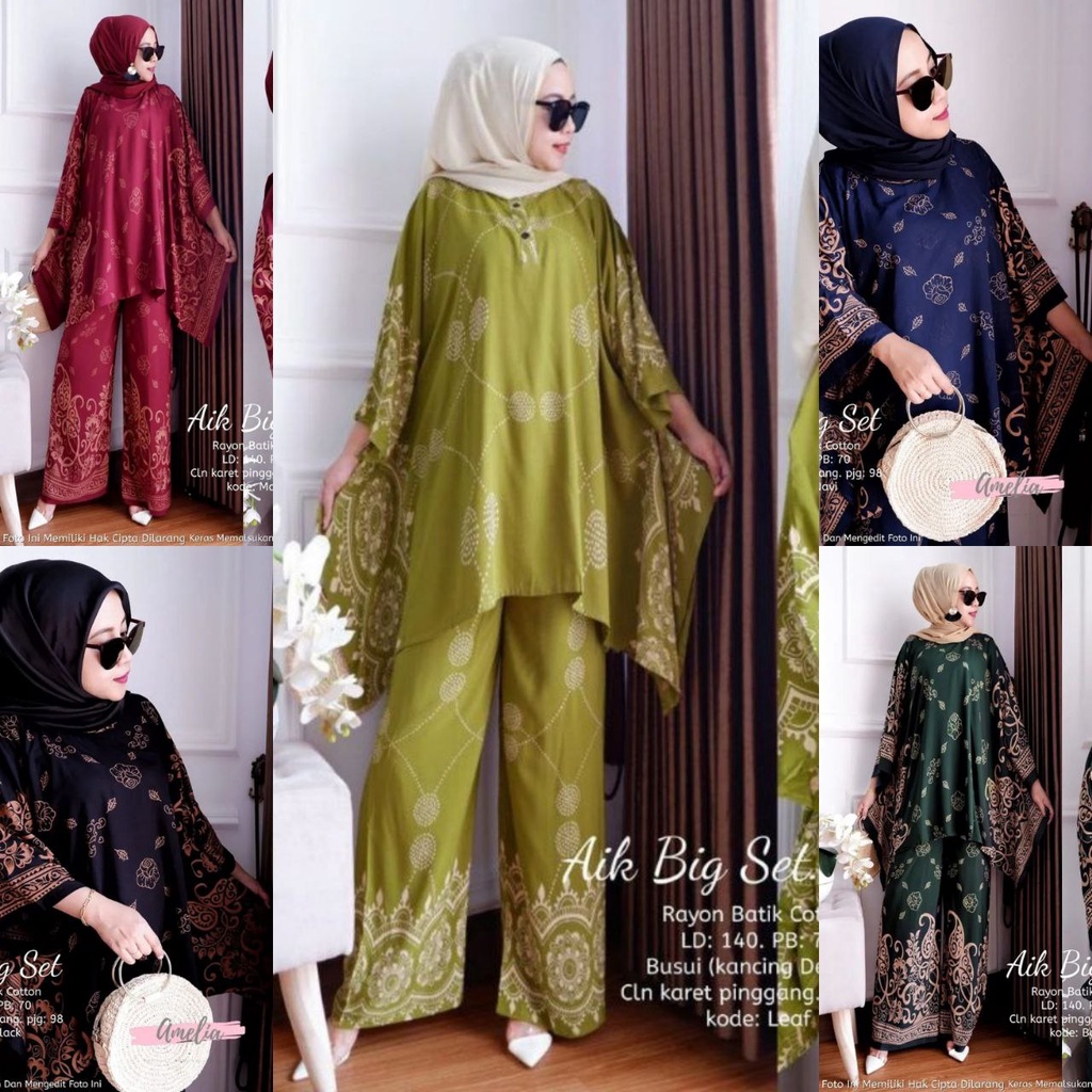 Daster Arab AIK BIG One Set Batwing Waka Waka Baju wanita Jumbo Setelan Celana Kulot Big Size Fashion Batik pakaian wanita set wanita