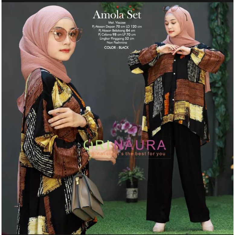 AMOLA ONE SET | SETELAN RAYON WANITA LENGAN PANJANG | SETELAN KEKNIAN | SETELAN TERBARU 2021