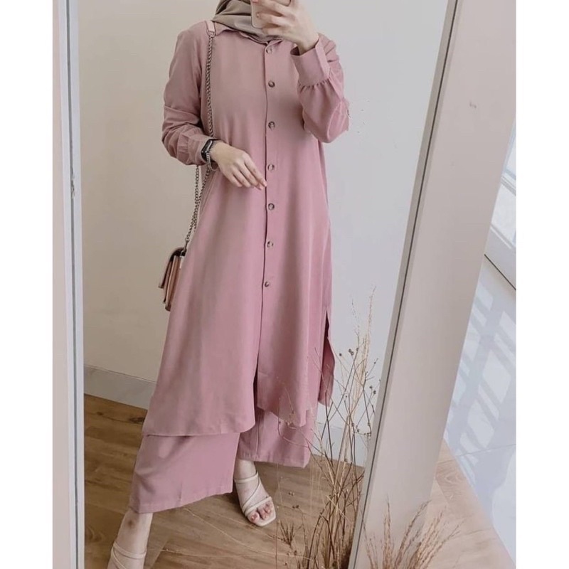 ONE SET SETELAN TUNIK PANJANG SETELAN PIYAMA SETELAN LONG SERUT WANITA GRADE A