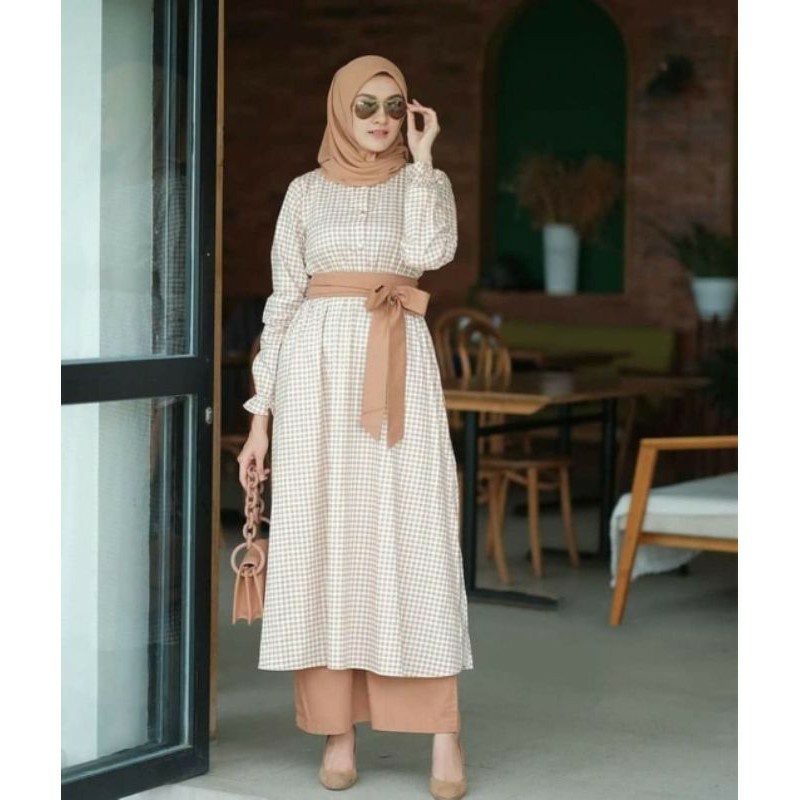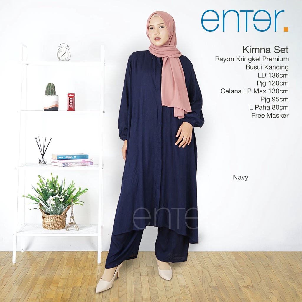 Enter Kimna Set Stelan Wanita Kekinian Crinkle Airflow Baju Setelan Jumbo LD 130 One Set Long Tunik