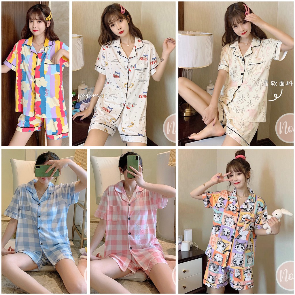 BAJU TIDUR WANITA LENGAN PENDEK CELANA PENDEK KOREA SHORT SLEEVE PANS PIYAMA WANITA DEWASA IMPORT ONE SET - SSP MIX1