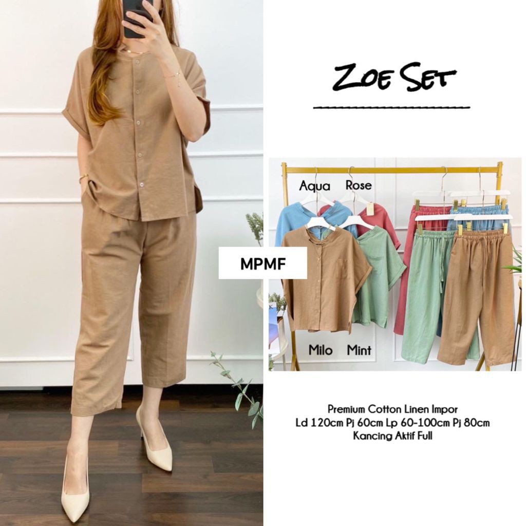 Zoe Set - Setelan One Set Polos Wanita Katun Linen Lengan Pendek Jumbo Ld 120 Kekinian Terbaru
